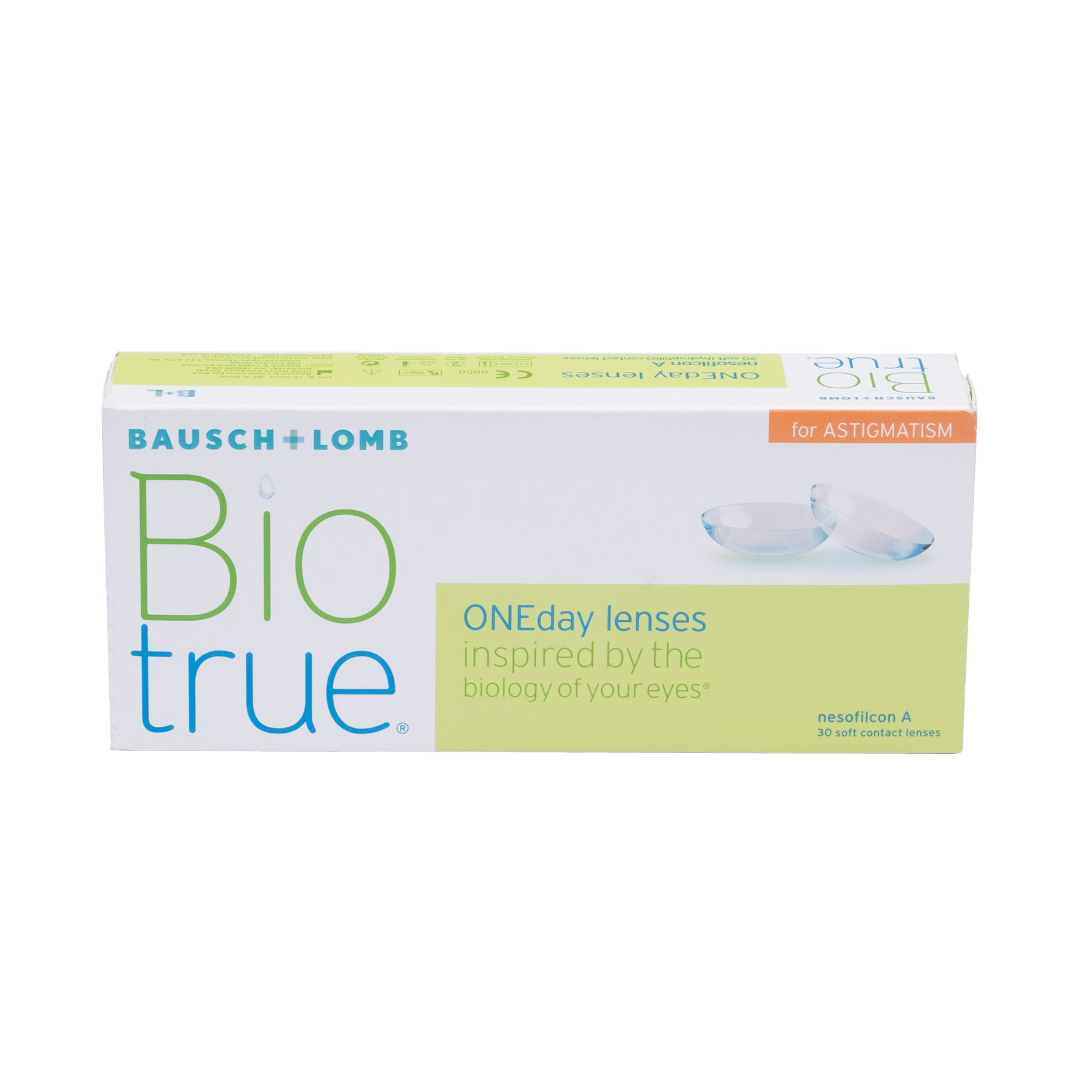 Improve your view with Bio true ONEday daily disposable contact lenses. These lenses help reduce halos and glare for astigmatism sufferers, provide UVA/UVB protection, and retain moisture to deliver clear and comfortable vision from morning to night.
