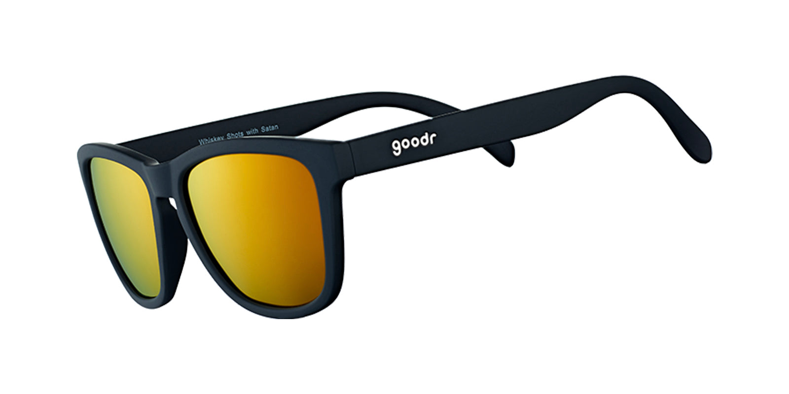 Amber lens OG sunnies inspired by doing shots with the Prince of Darkness. UV400 protection for sun and/or fiery hell pits.